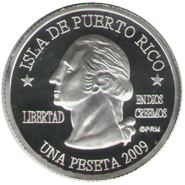 Описание: Портрет Джорджа Вашингтона, первого президента США с 1789 по 1797 год, в профиль слева сопровождается девизом «EN DIOS CREEMOS» и надписью «LIBERTAD» и окружен номиналом и надписью «ISLA DE PUERTO RICO».