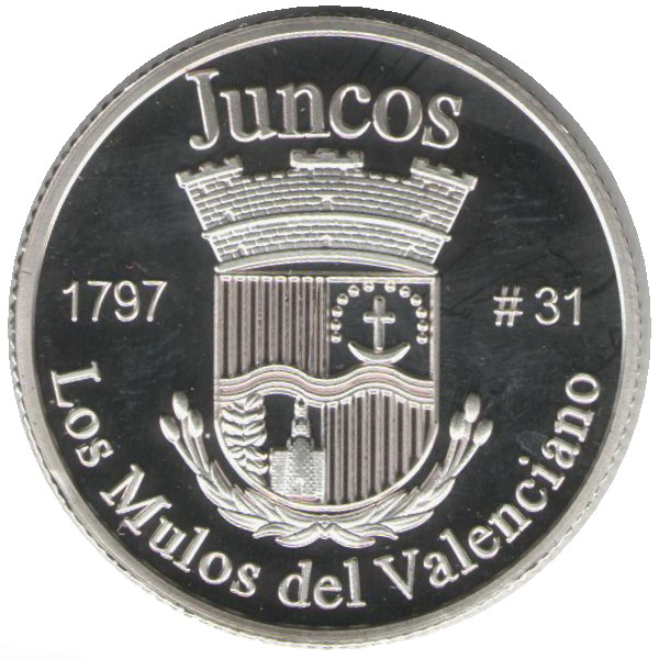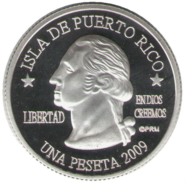 Описание: Портрет Джорджа Вашингтона, первого президента США с 1789 по 1797 год, в профиль слева сопровождается девизом «EN DIOS CREEMOS» и надписью «LIBERTAD» и окружен номиналом и надписью «ISLA DE PUERTO RICO».