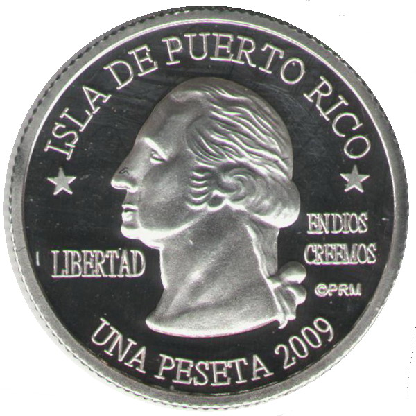 Описание: Портрет Джорджа Вашингтона, первого президента США с 1789 по 1797 год, в профиль слева сопровождается девизом «EN DIOS CREEMOS» и надписью «LIBERTAD» и окружен номиналом и надписью «ISLA DE PUERTO RICO».