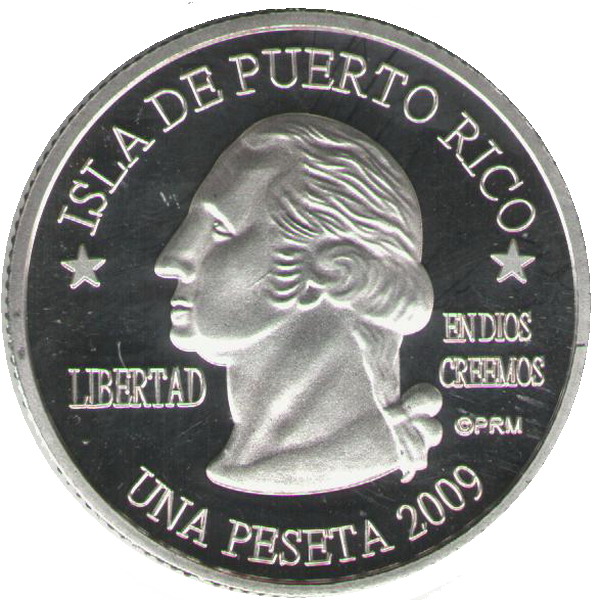 Описание: Портрет Джорджа Вашингтона, первого президента США с 1789 по 1797 год, в профиль слева сопровождается девизом «EN DIOS CREEMOS» и надписью «LIBERTAD» и окружен номиналом и надписью «ISLA DE PUERTO RICO».
