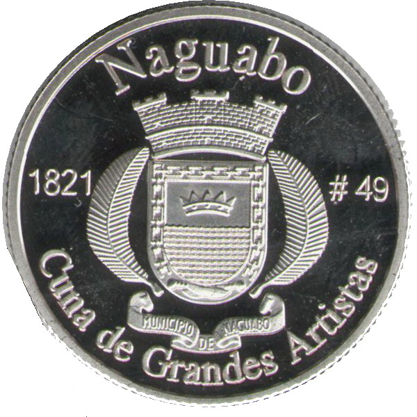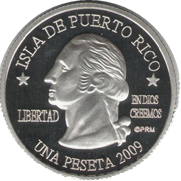 Описание: Портрет Джорджа Вашингтона, первого президента США с 1789 по 1797 год, в профиль слева сопровождается девизом «EN DIOS CREEMOS» и надписью «LIBERTAD» и окружен номиналом и надписью «ISLA DE PUERTO RICO».