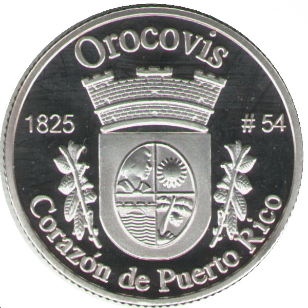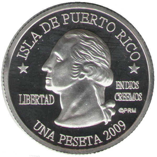 Описание: Портрет Джорджа Вашингтона, первого президента США с 1789 по 1797 год, в левом профиле сопровождается девизом «EN DIOS CREEMOS» и надписью «LIBERTAD» и окружен номиналом и надписью «ISLA DE PUERTO RICO».
