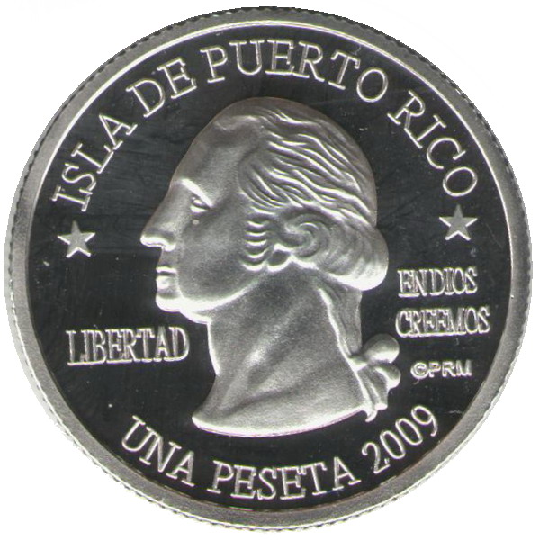 Описание: Портрет Джорджа Вашингтона, первого президента США с 1789 по 1797 год, в левом профиле сопровождается девизом «EN DIOS CREEMOS» и надписью «LIBERTAD» и окружен номиналом и надписью «ISLA DE PUERTO RICO».