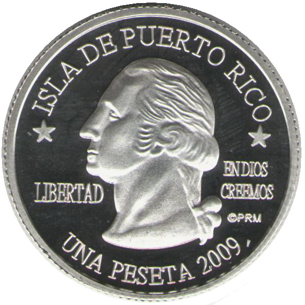 Описание: Портрет Джорджа Вашингтона, первого президента США с 1789 по 1797 год, в профиль слева сопровождается девизом «EN DIOS CREEMOS» и надписью «LIBERTAD» и окружен номиналом и надписью «ISLA DE PUERTO RICO».