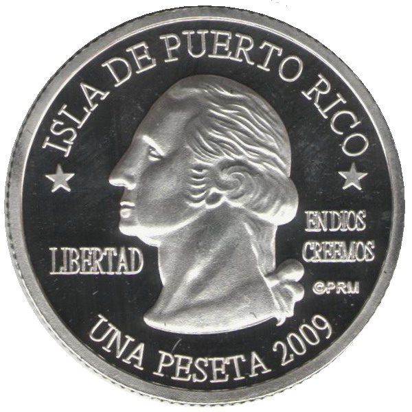 Описание: Портрет Джорджа Вашингтона, первого президента США с 1789 по 1797 год, в профиль слева сопровождается девизом «EN DIOS CREEMOS» и надписью «LIBERTAD» и окружен номиналом и надписью «ISLA DE PUERTO RICO».