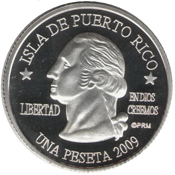 Описание: Портрет Джорджа Вашингтона, первого президента США с 1789 по 1797 год, в профиль слева сопровождается девизом «EN DIOS CREEMOS» и надписью «LIBERTAD» и окружен номиналом и надписью «ISLA DE PUERTO RICO».