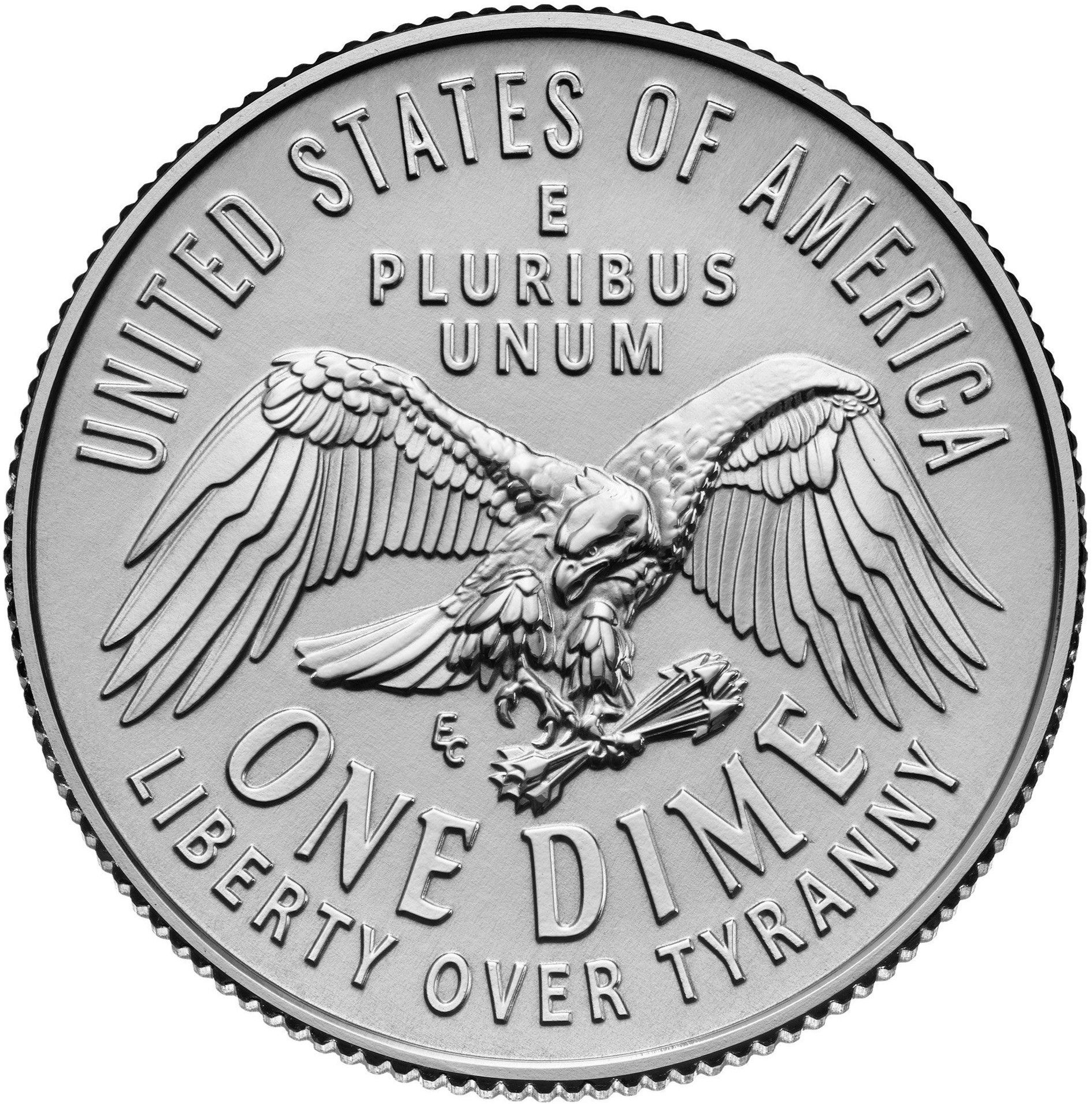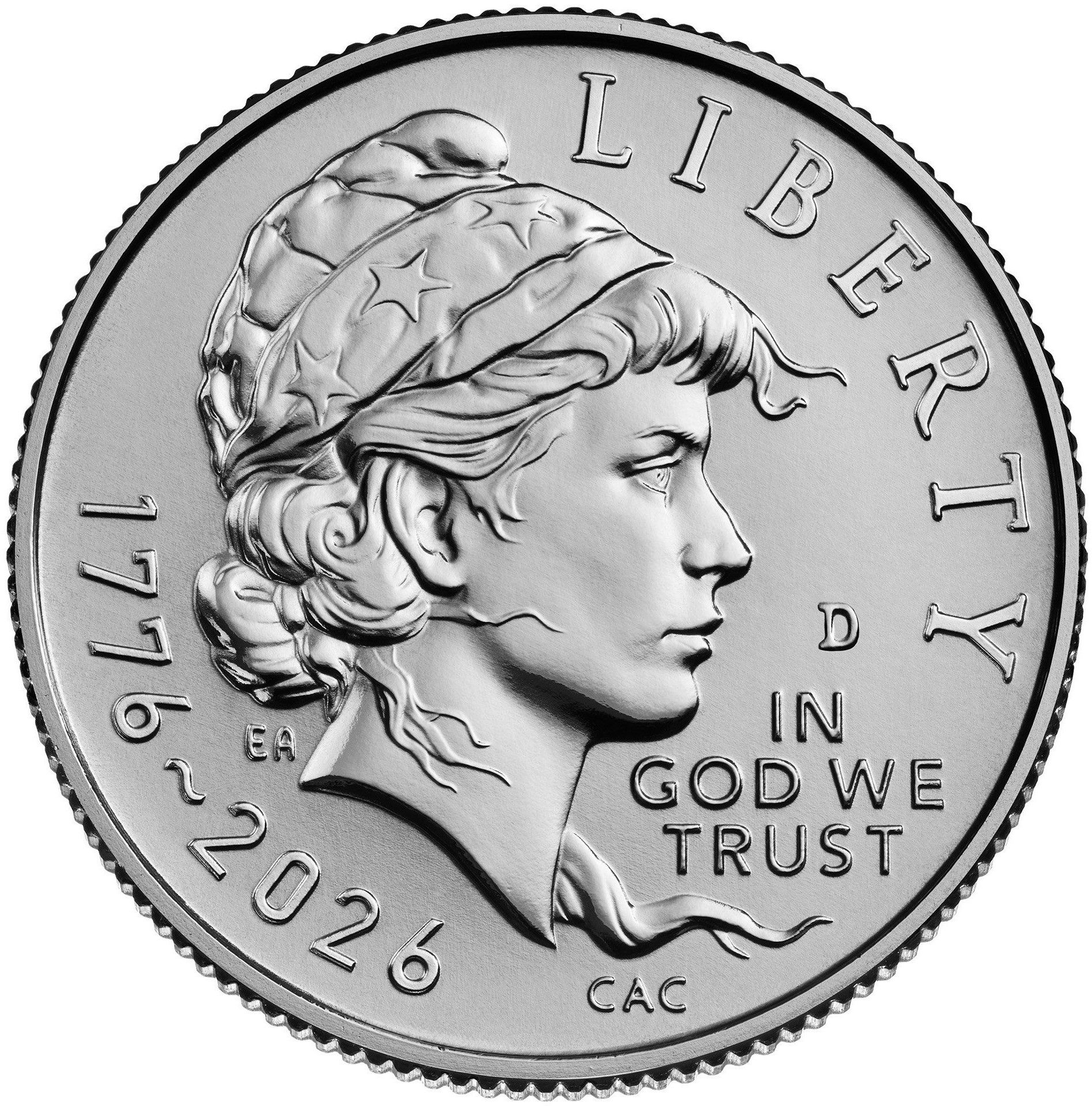 Описание: На аверсе монеты изображена решительная Свобода, чьи волосы развевает ветер революции. С непоколебимой решимостью она противостоит тирании британской монархии. Ее шапка свободы украшена звездами и полосками, что одновременно является символом нашей молодой нации и отсылкой к ранним американским монетам.