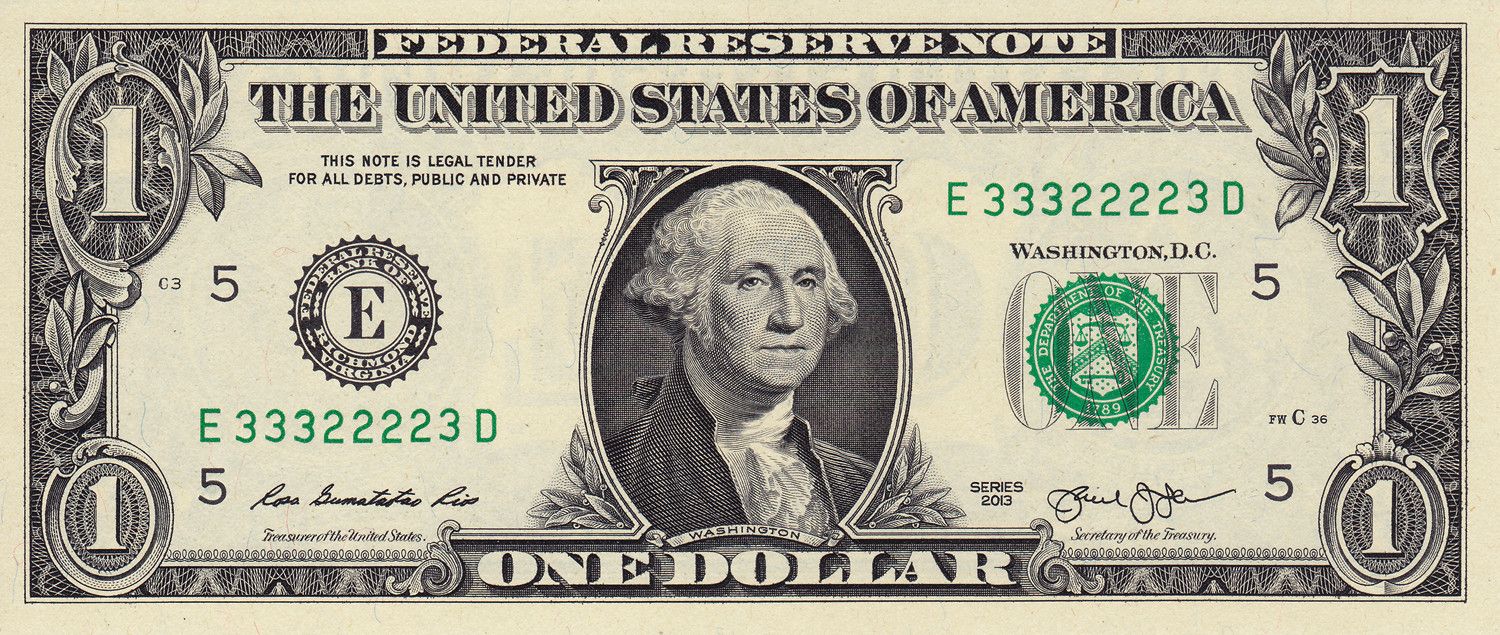 Описание: Портрет Джорджа Вашингтона в центрі. Підпис скарбника та печатка Федерального резервного банку ліворуч. Підпис секретаря та печатка казначейства праворуч.