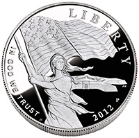 Описание: На монете изображена Леди Свобода, размахивающая флагом с 15 звездами и 15 полосами на фоне форта МакГенри.