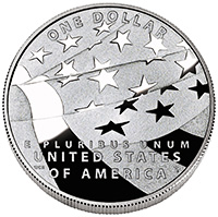 Описание: На монете изображен развевающийся современный американский флаг.