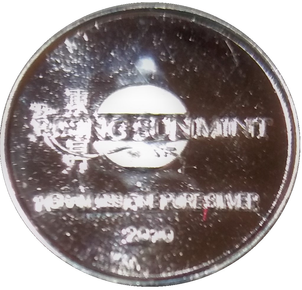 Описание: Су (?) у центрі, слова по горизонталі: китайські ієрогліфи, Монетний двір «Висхідне сонце». Внизу: 1 грам .999 чистого срібла, 2010 рік.