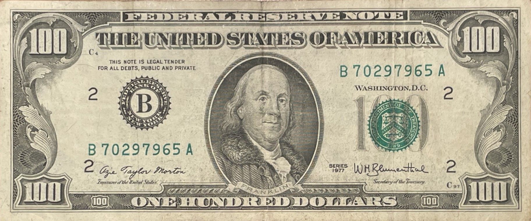 Название: 100 долларов (банкнота Федеральной резервной системы; маленький портрет)