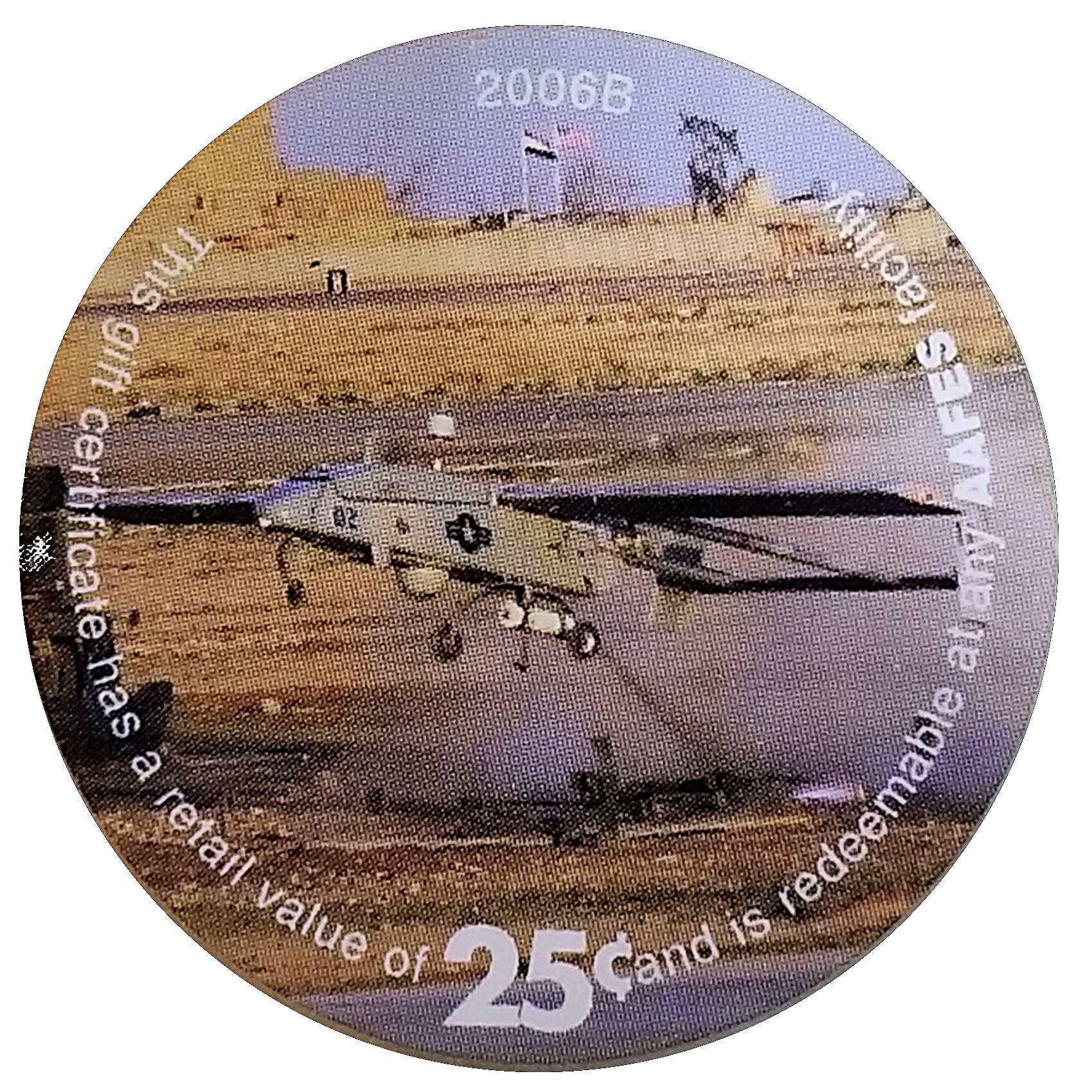25 центів — подарунковий сертифікат AAFES (9D25)
