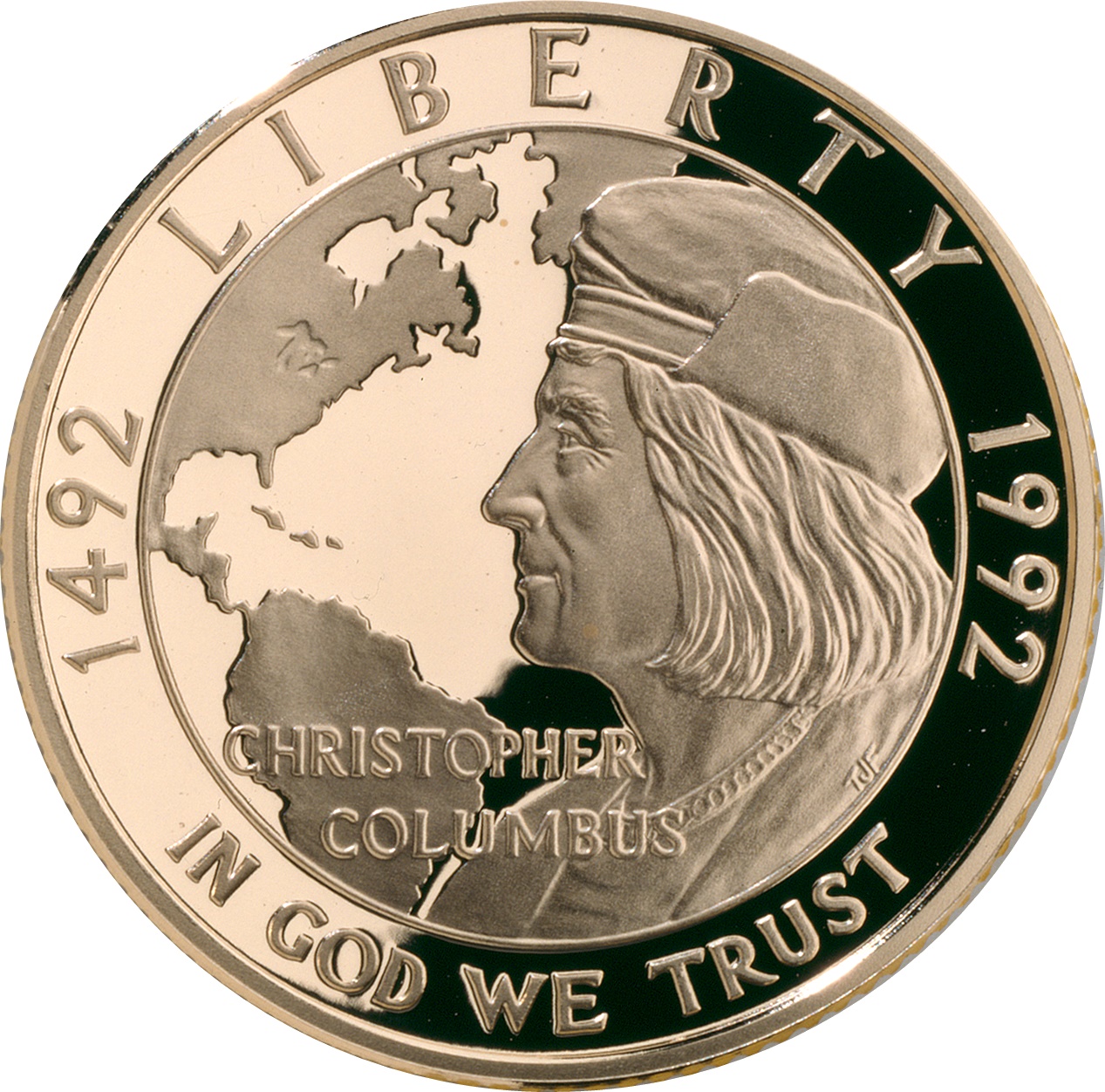 Описание: Герб Адмирала океанов, почетная награда, присвоенная Колумбу, и карта, на которой западная часть Старого Света перекрывается датой 1492 год.