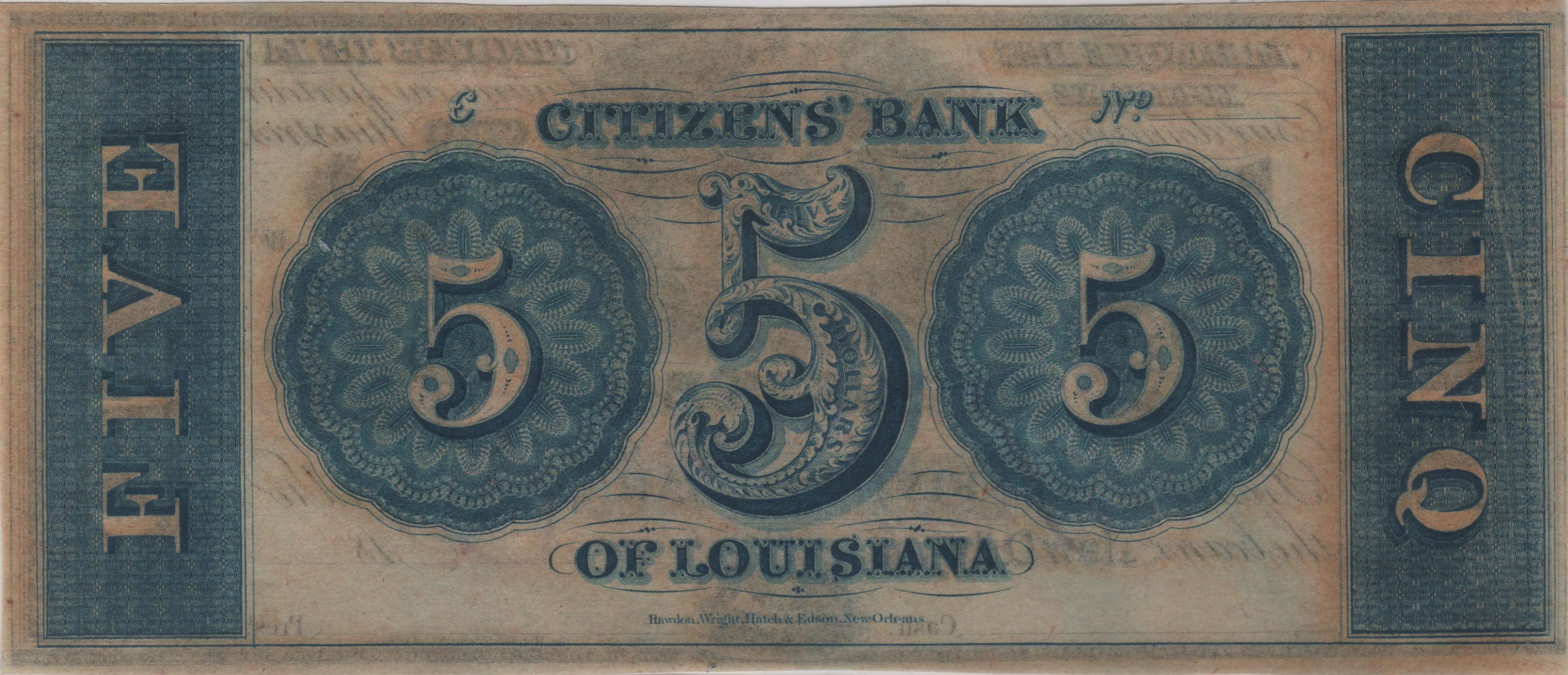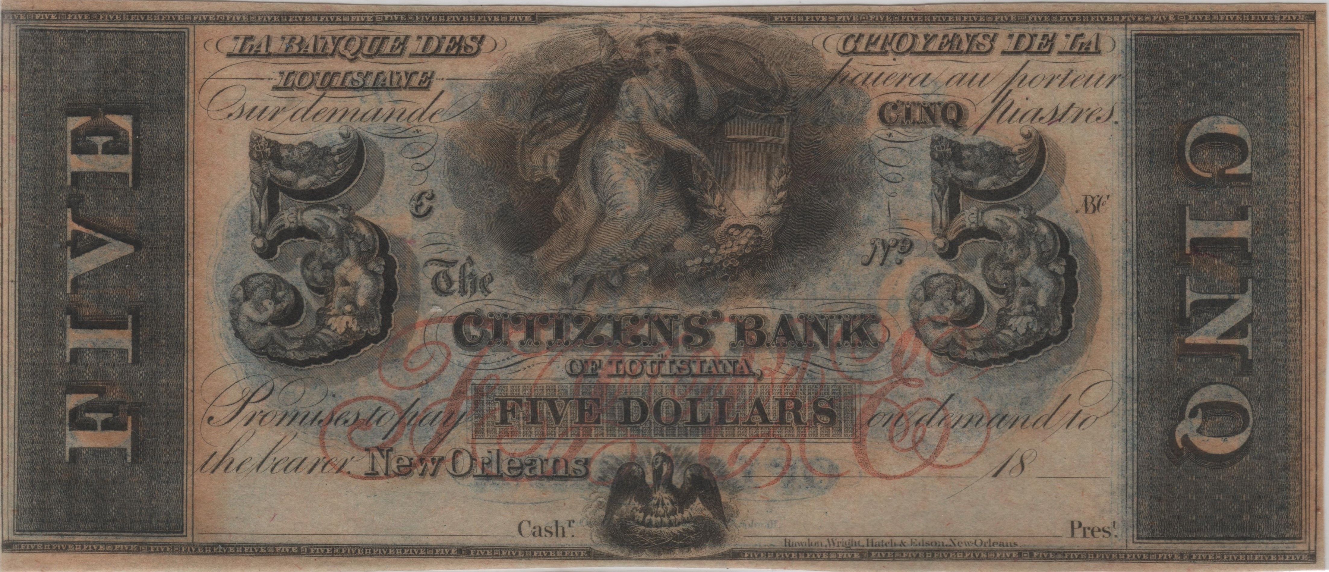 5 доларів (Громадський банк Луїзіани, Новий Орлеан; двомовний)