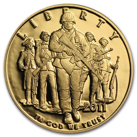 Описание: Цей дизайн представляє військову службу армії США від Війни за незалежність до сьогоднішнього дня, символізуючи її безперервну силу та готовність. На дизайні зображені, зліва направо, солдати Континентальної армії, Громадянської війни, сучасності, Другої світової війни та Першої світової війни.