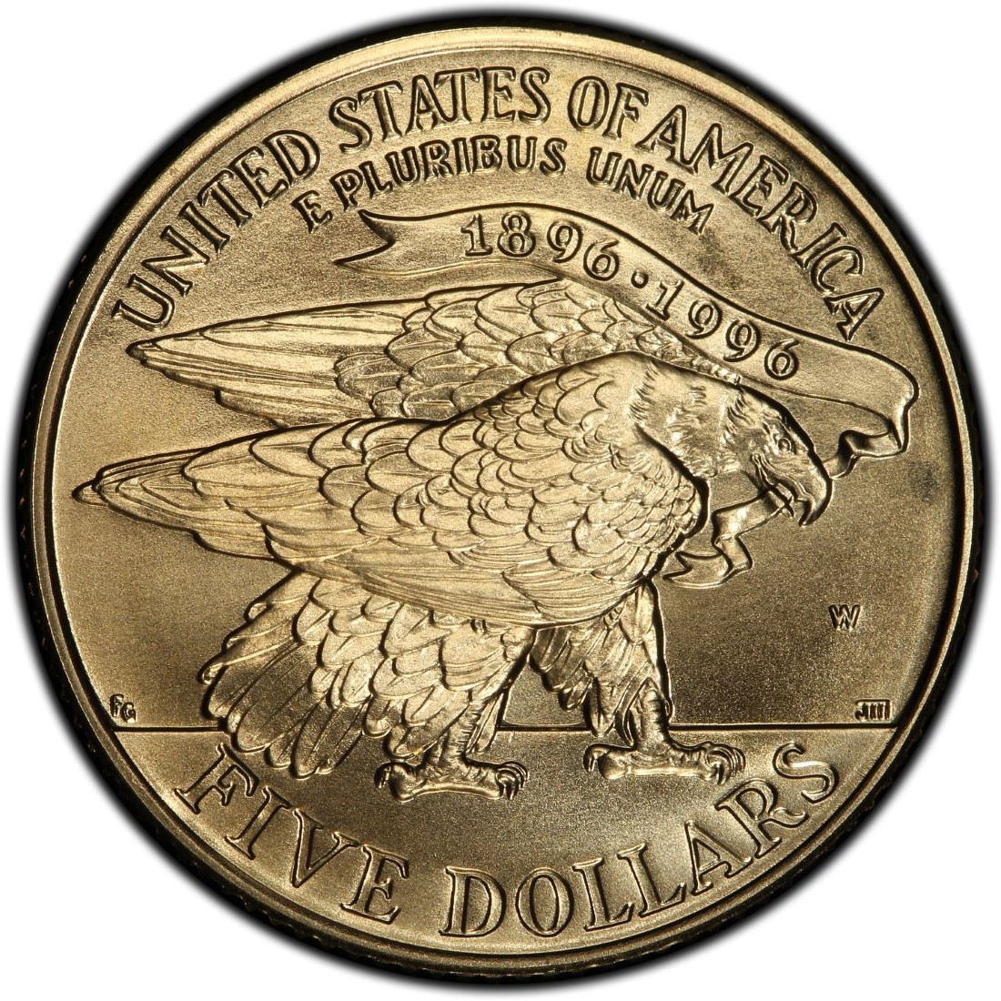 Описание: Белоголовый орлан с баннером в клюве с датами столетия Олимпийских игр «1896-1996».