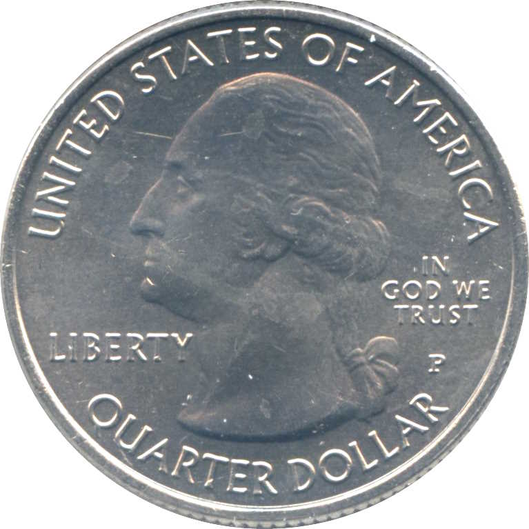 Описание: Портрет Джорджа Вашингтона, первого президента США с 1789 по 1797 год, в профиль слева сопровождается девизом «IN GOD WE TRUST» (Мы верим в Бога) и надписью «LIBERTY» (Свобода), окруженной номиналом и надписью «UNITED STATES OF AMERICA» (Соединенные Штаты Америки).