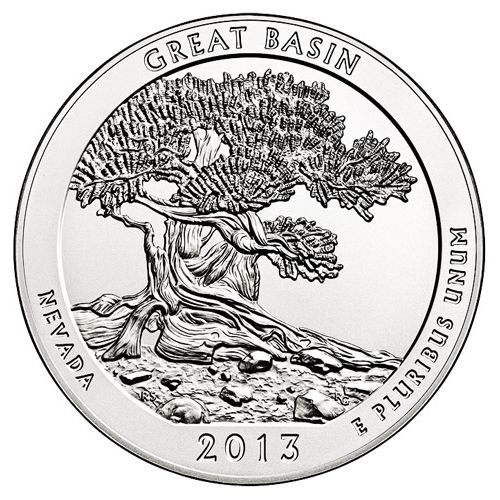 ¼ долара «Вашингтонський квартал» (Національний парк Грейт-Бесін — срібний зливок 5 унцій)