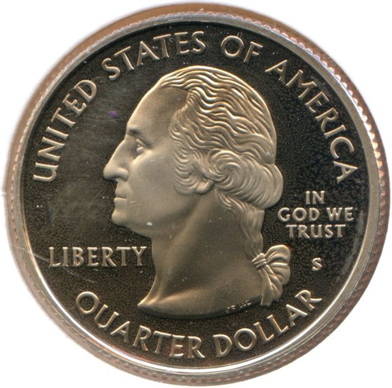 Описание: Портрет Джорджа Вашингтона, первого президента США с 1789 по 1797 год, в профиль слева сопровождается девизом «IN GOD WE TRUST» (Мы верим в Бога) и надписью «LIBERTY» (Свобода) и окружен номиналом и надписью «UNITED STATES OF AMERICA» (Соединенные Штаты Америки), а также инициалами граверов внизу (см. Комментарии).