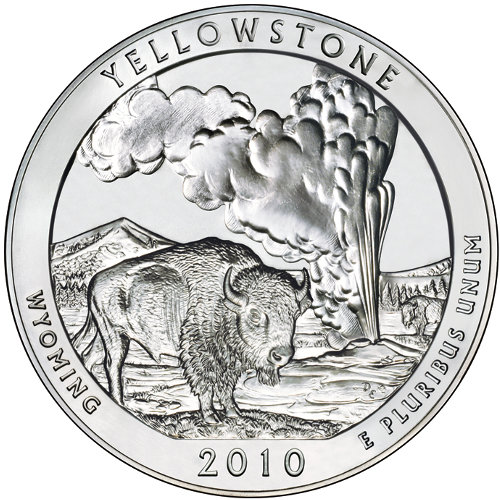 ¼ доллара «Вашингтонский квартал» (Национальный парк Йеллоустоун — серебряный слиток 5 унций)