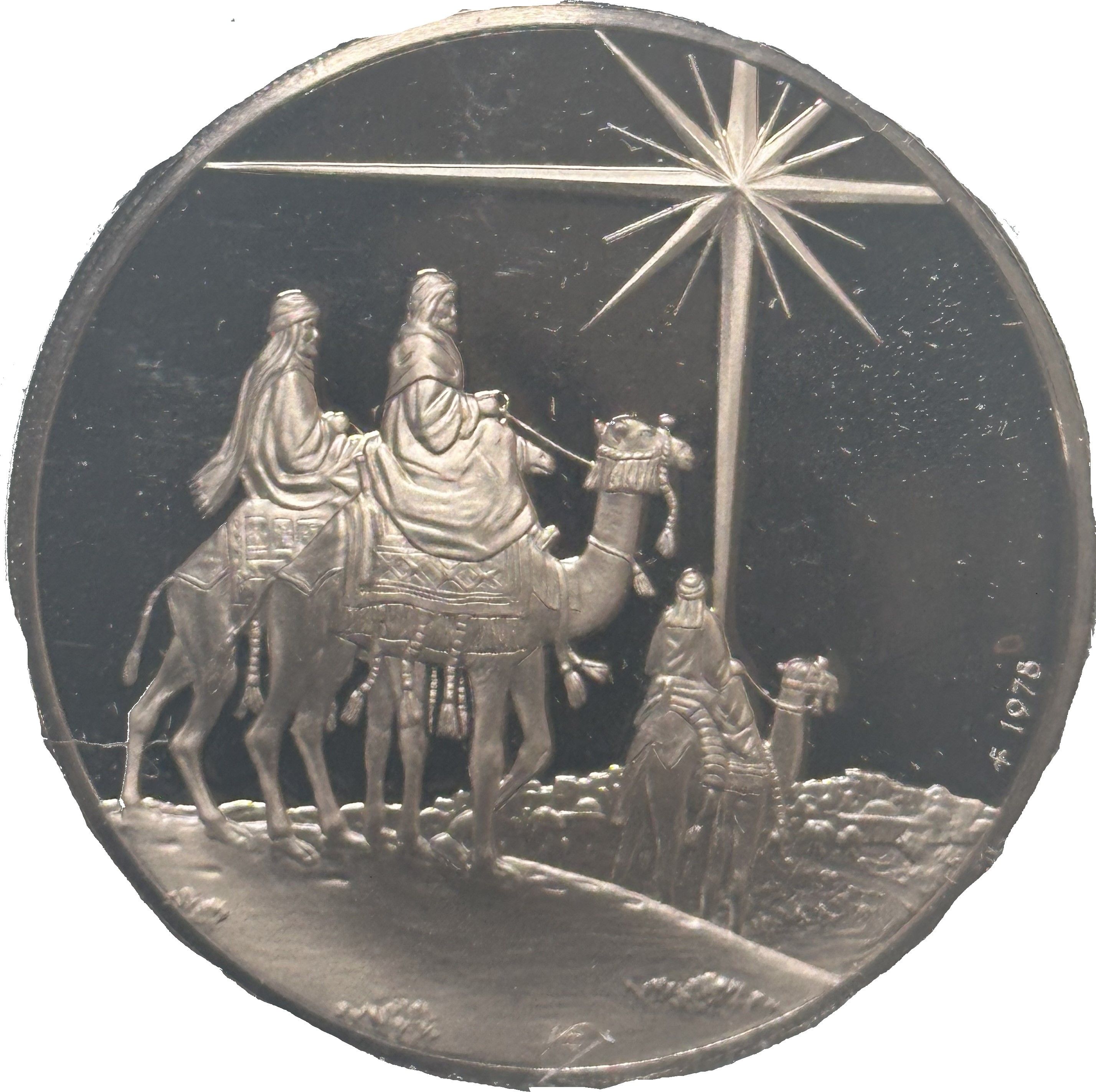 Гурт: Сегментована рельєфна поверхня з написом (SOLID BRONZE © FM 78)