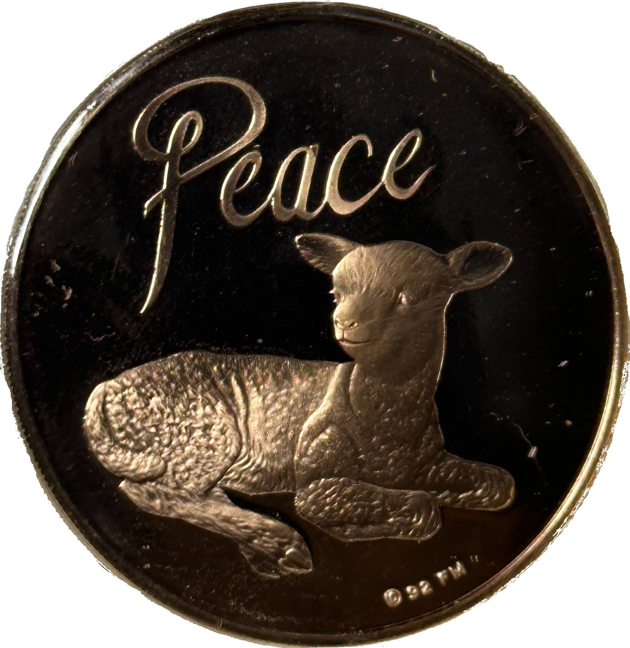 Гурт: Сегментована рельєфна поверхня з написом (BRONZE © FM 92)