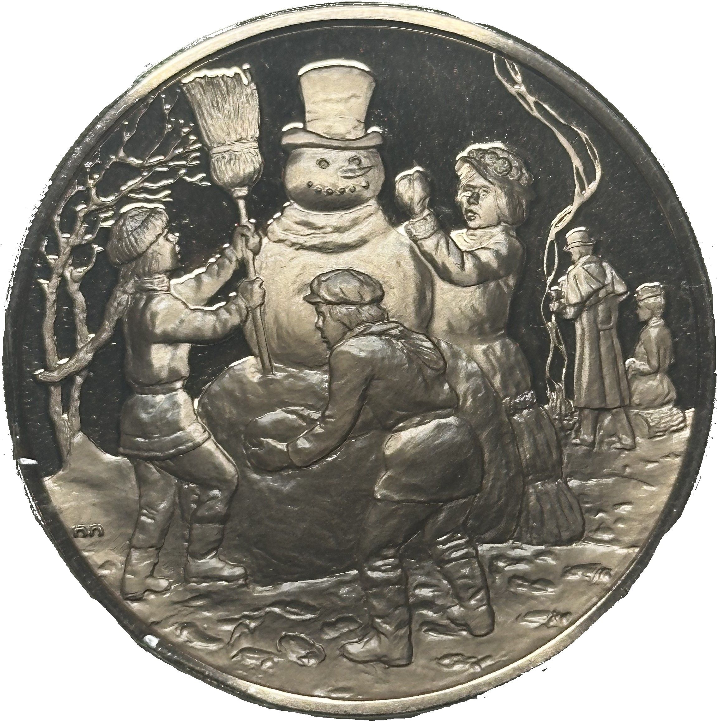 Название: Святкова вітальна листівка-медаль — Сніжна сцена