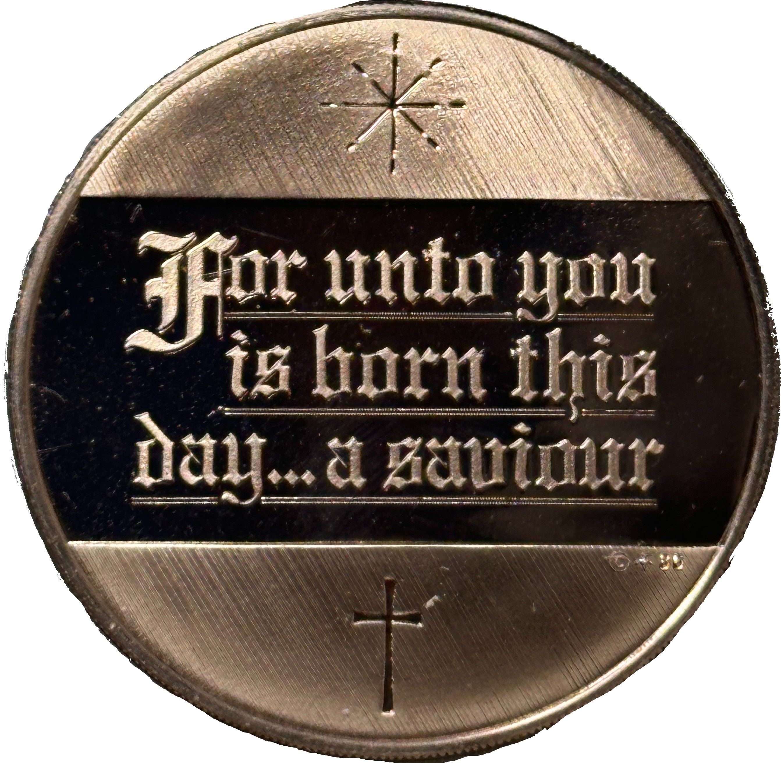 Гурт: Сегментована рельєфна поверхня з написом (SOLID BRONZE © FM 86)