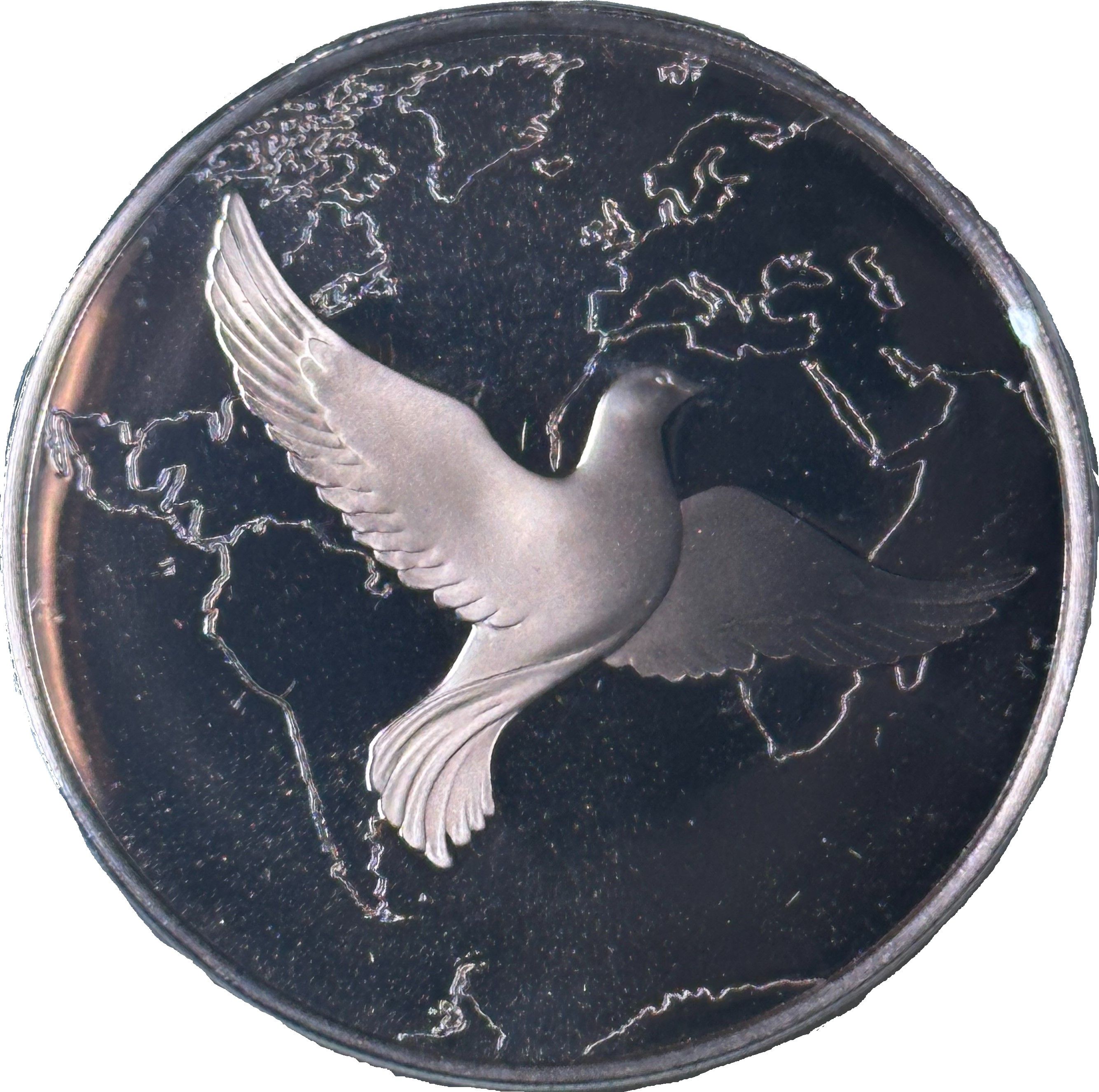 Святкова вітальна листівка-медаль — «Миру всьому світу»