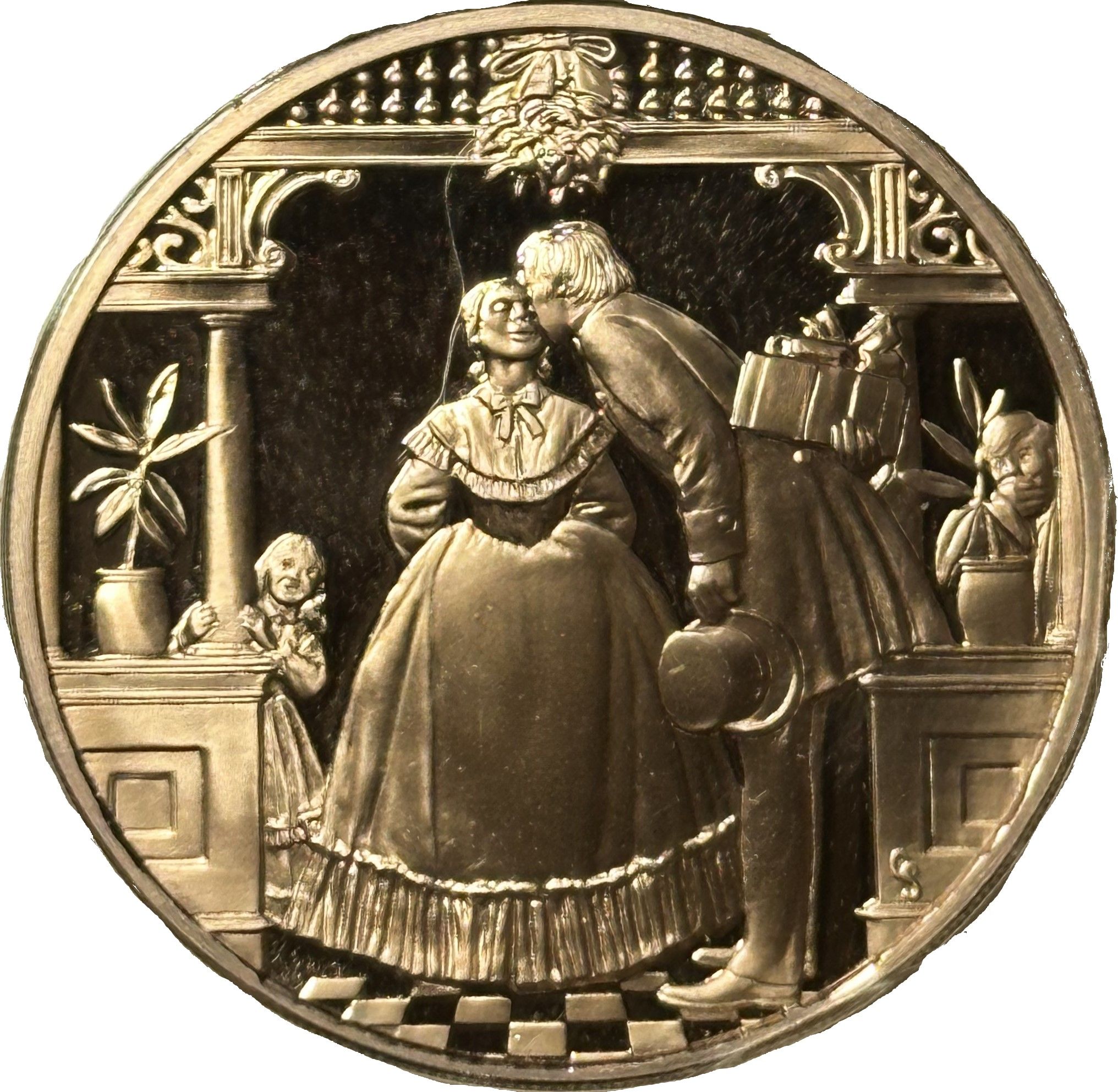 Название: Святкова вітальна листівка-медаль — Під омелою