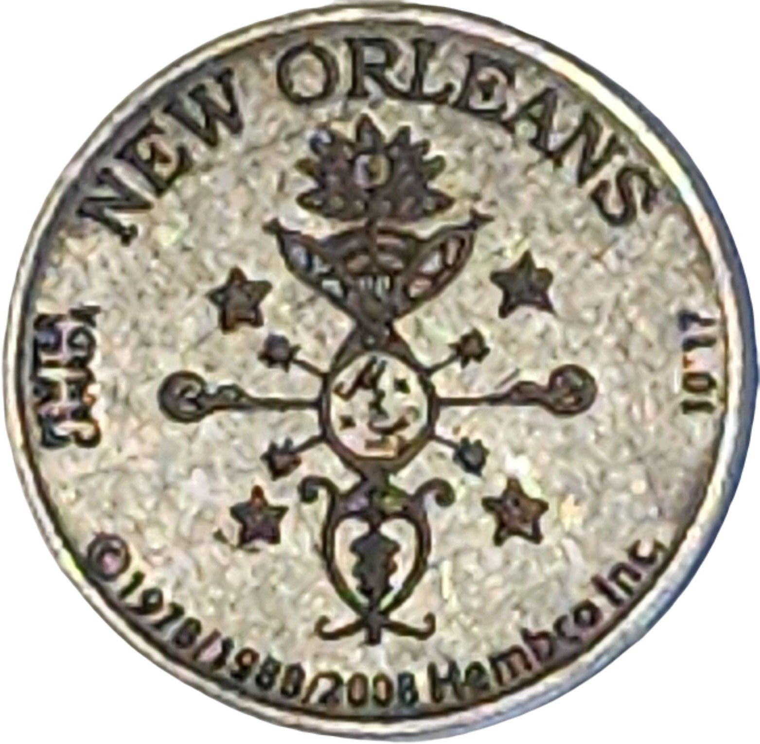 Описание: У центрі зображено символ вуду, що включає Землю, оточену зірками та планетами, яка стоїть на п'єдесталі. Над Землею зображено крила та головний убір.