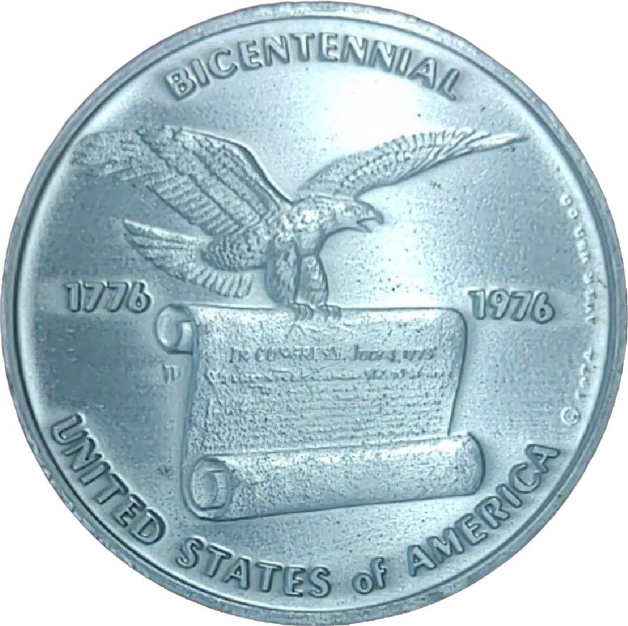 Описание: Білоголовий орлан, символ США, тримає в пазурах Конституцію, розділяючи дати двохсотріччя