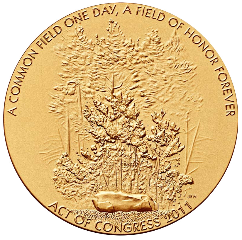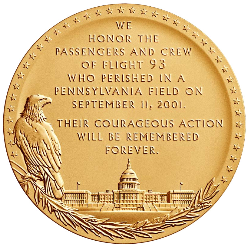Описание: На аверсі медалі зображено гаї болиголовів за меморіальним валуном у Меморіалі рейсу 93, що є простим нагадуванням про втрату та зцілення.
