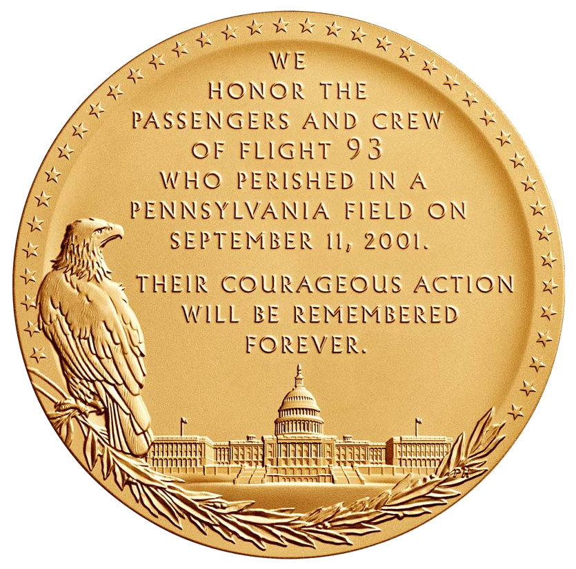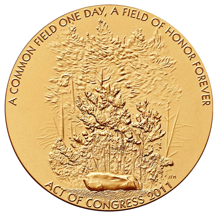 Описание: На аверсі медалі зображено гаї болиголову за меморіальним валуном у Меморіалі рейсу 93, що є простим нагадуванням про втрату та зцілення.
