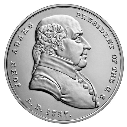 Описание: На аверсе медали изображен портрет Джона Адамса с надписями «JOHN ADAMS PRESIDENT OF THE U.S.» и «A.D. 1797» вдоль края медали.