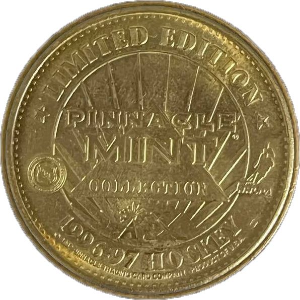 Описание: Трикутник у центрі з чотирнадцятьма променями на тлі. Логотип офіційного ліцензованого продукту NHL ліворуч. Логотип NHLPA праворуч. Логотип Pinnacle та схрещені хокейні ключки внизу.