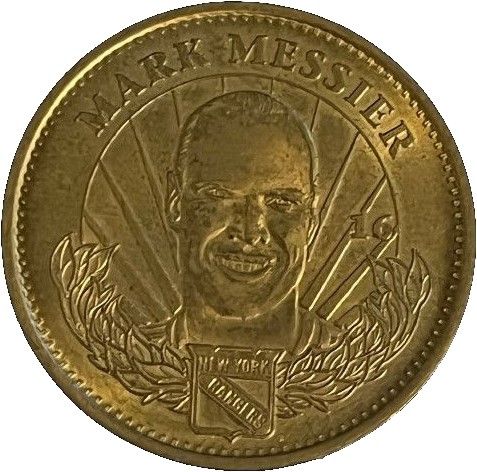 Описание: Портрет Марка Мессьє перед дванадцятьма променями над вінком, в центрі якого знаходиться логотип «Нью-Йорк Рейнджерс».