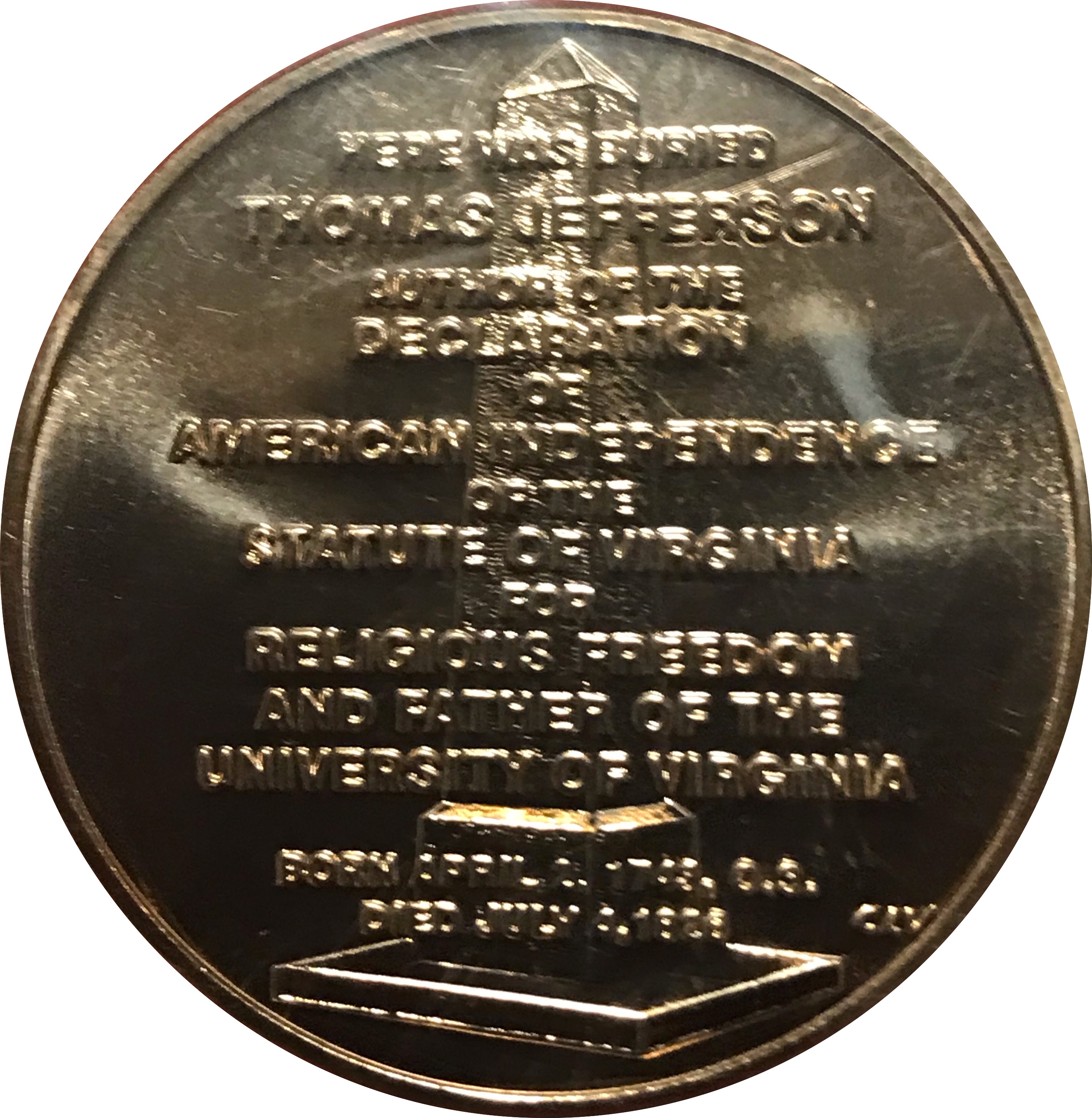 Описание: Могильна плита президента Джефферсона в Монтічелло з епітафією, яку він попросив написати, щоб відобразити його найважливіші досягнення.