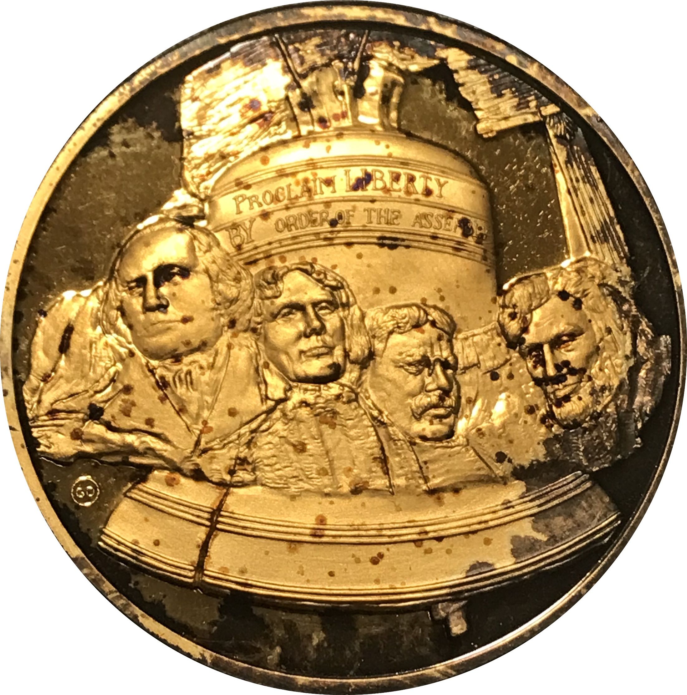 Описание: Гора Рашмор із Дзвоном Свободи на задньому плані