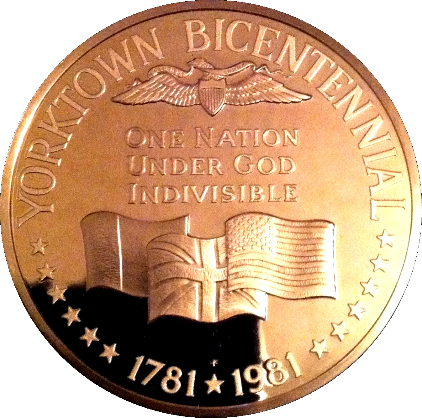Описание: Печатка Сполучених Штатів з крилами та головою орла, що визирає з верхньої частини, тримаючи стрічку з написом E Pluribus Unum. Внизу зображені прапори Франції, Великої Британії (Британії) та Сполучених Штатів.