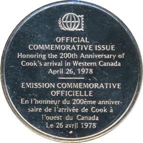 Название: Медальйон — Поштмейстери (200-річчя прибуття Джеймса Кука до Західної Канади)