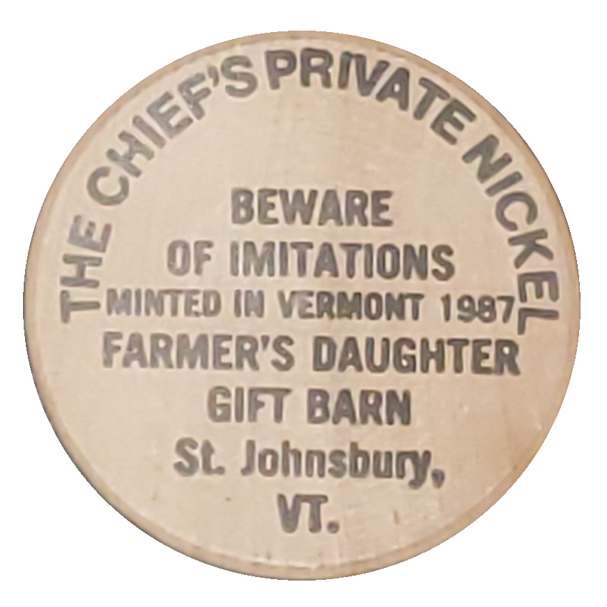 Приватна монета шефа — подарунок дочки фермера — Сент-Джонсбері, штат Вермонт