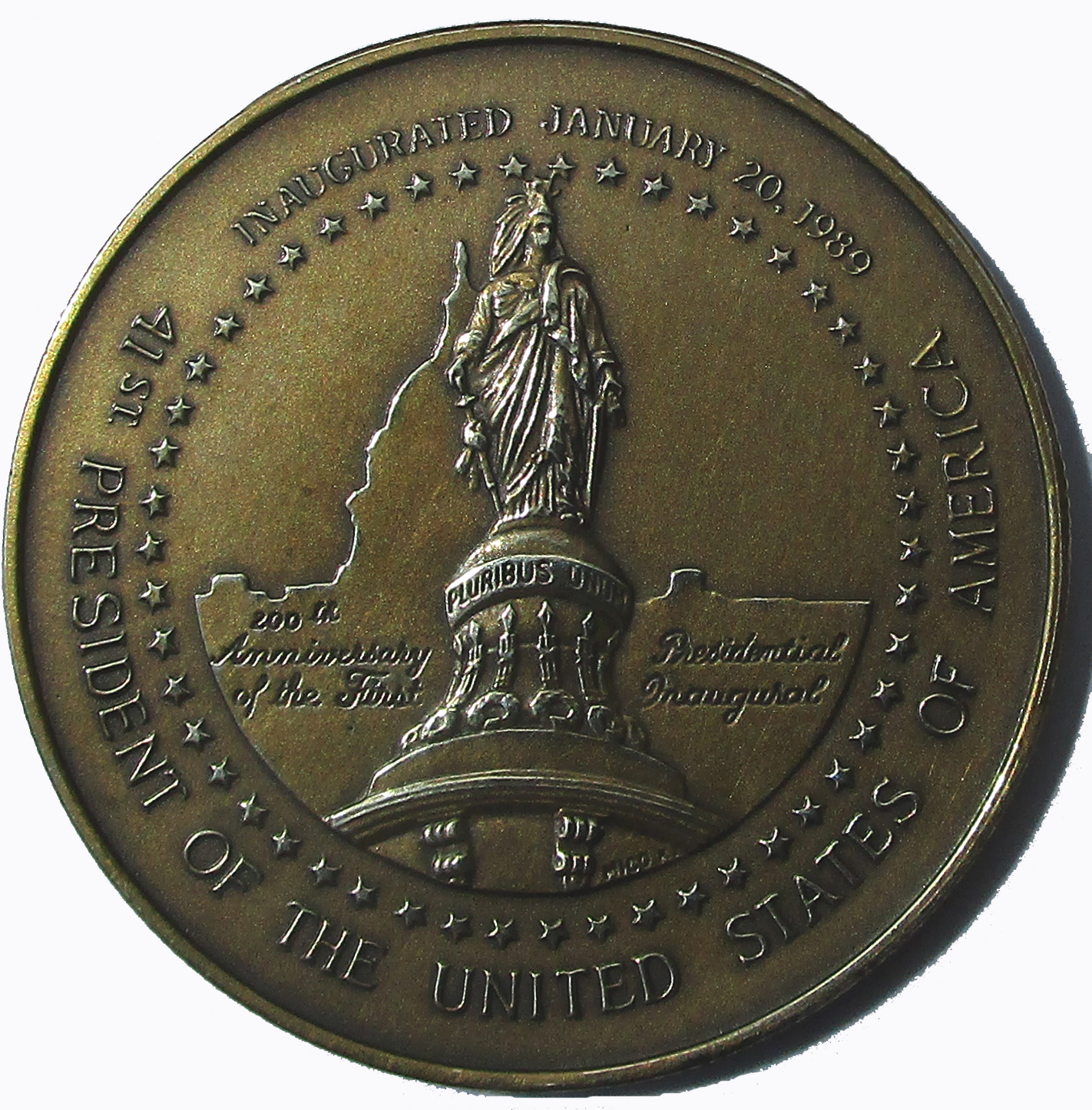Описание: Зображення LIBERTY (стоїть на п'єдесталі) або напис PLURIBUS UNUM, «напис праворуч + ліворуч від п'єдесталу» 200-річчя першої інавгурації президента, 50 зірок, розташованих по колу