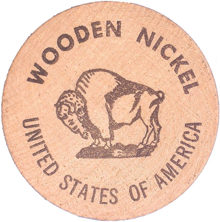 Дерев'яна монета номіналом 5 центів — 2-й рік Frederic Coin Club (Фредерік, Вісконсин)