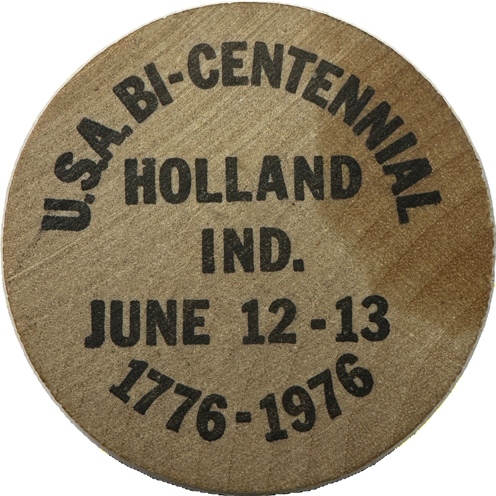 Дерев'яна монета номіналом 5 центів — 200-річчя Голландії (Голландія, штат Індіана)