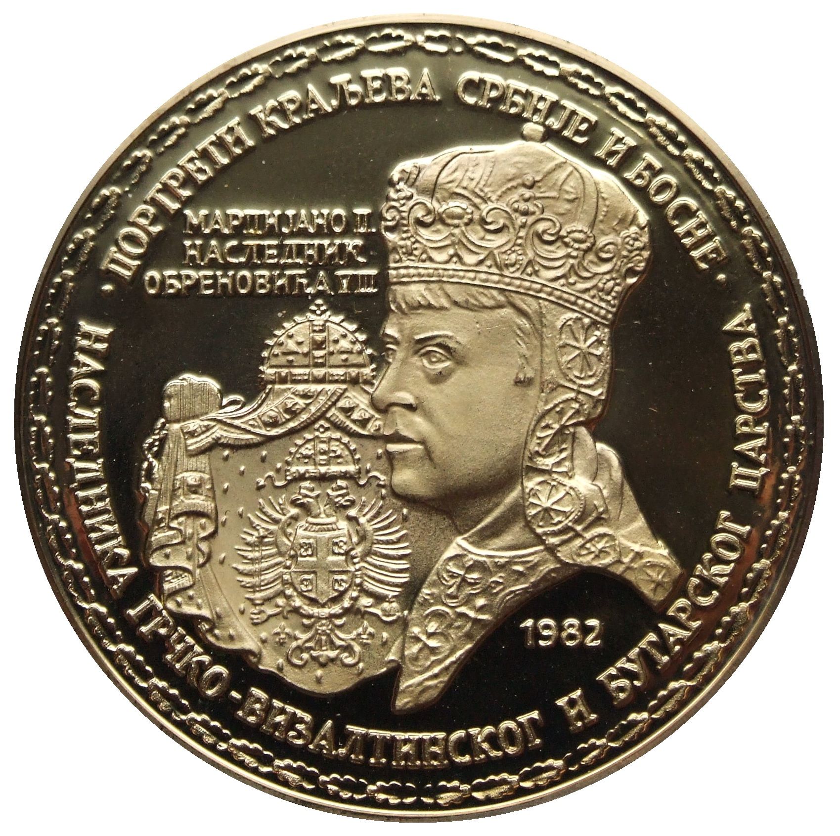 Описание: Герб Королівства Сербія та портрет Марціано Лаварелло (Марціано II), спадкоємця Обреновича VIII